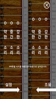 아이폰에서 실행 가능한 가야금25현 앱은 현을 터치하여 연주하며 다양하게 소리를 조절할 수 있습니다.